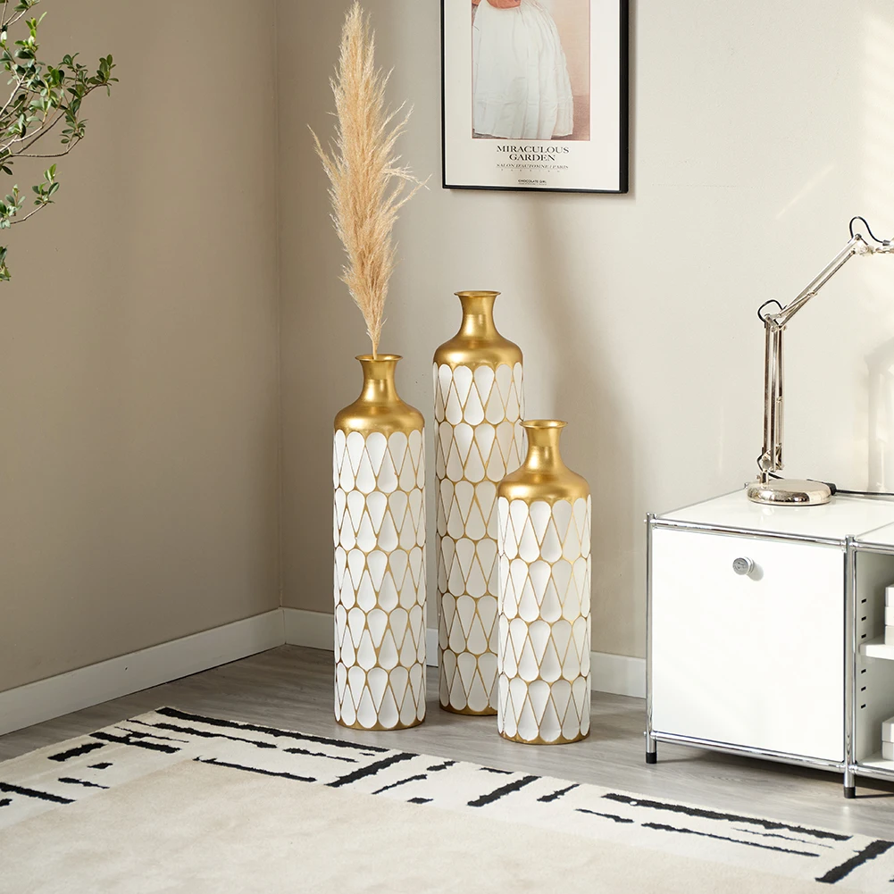 Floor Metal Vase 3-piece Set, Modern Home Metal Decoration Drop-shaped Vase, Big Standing Vase For Living Room Corner Hallway