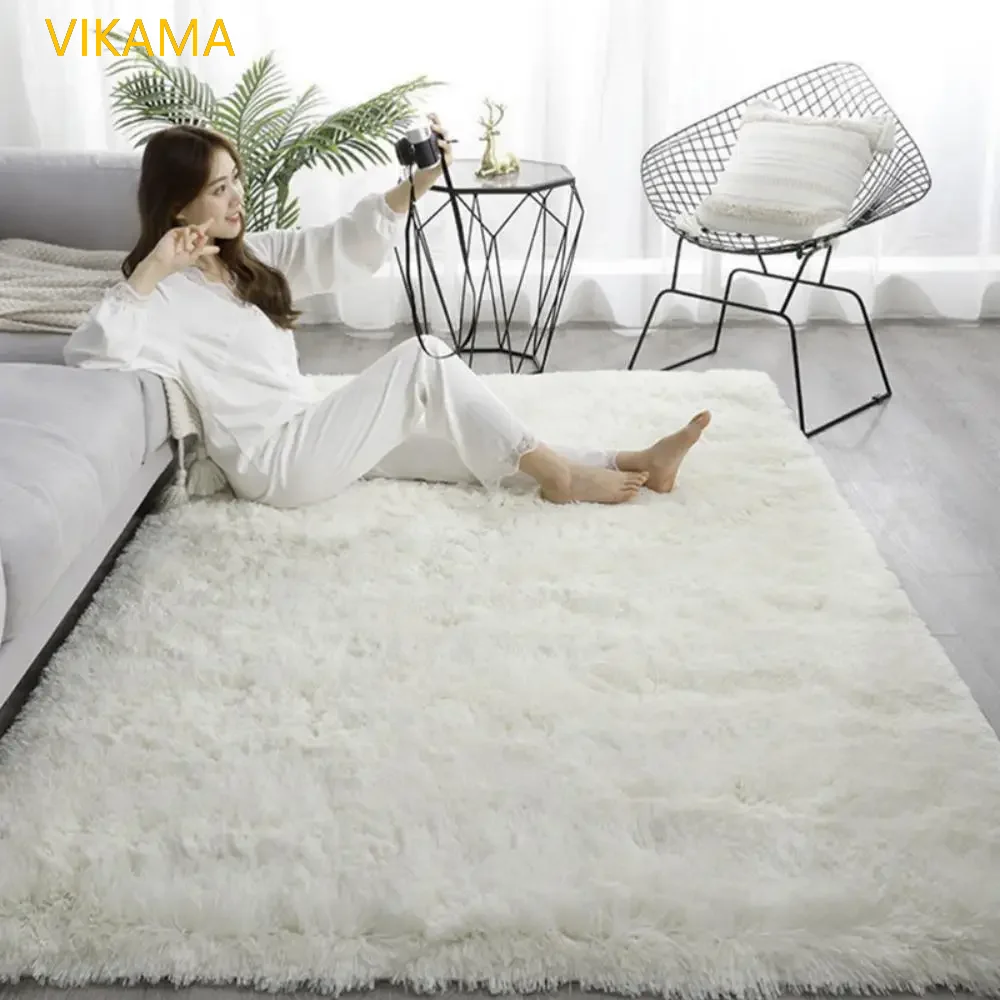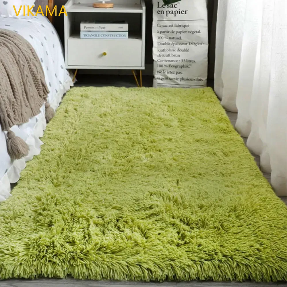 VIKAMA Simple Silk Wool Plush Carpet Bedroom Living Room Bed Blanket Solid Color High-Grade Soft Blanket Room Coffee Table Mat